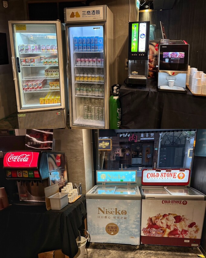 自助吧區可樂機、鋁箔包飲料、咖啡機、北海道niseko以及coldstone冰淇淋,「金洹苑」提供的酒精飲料種類真的非常多,鋁箔罐裝的台啤、金車柏克金、果微醺、麒麟bar,菜單上還可以點梅子酒、百香柚子酒、紅酒、白酒、韓國燒酒、SHOT、調酒,記得帶上你的酒鬼朋友來用餐最划算!