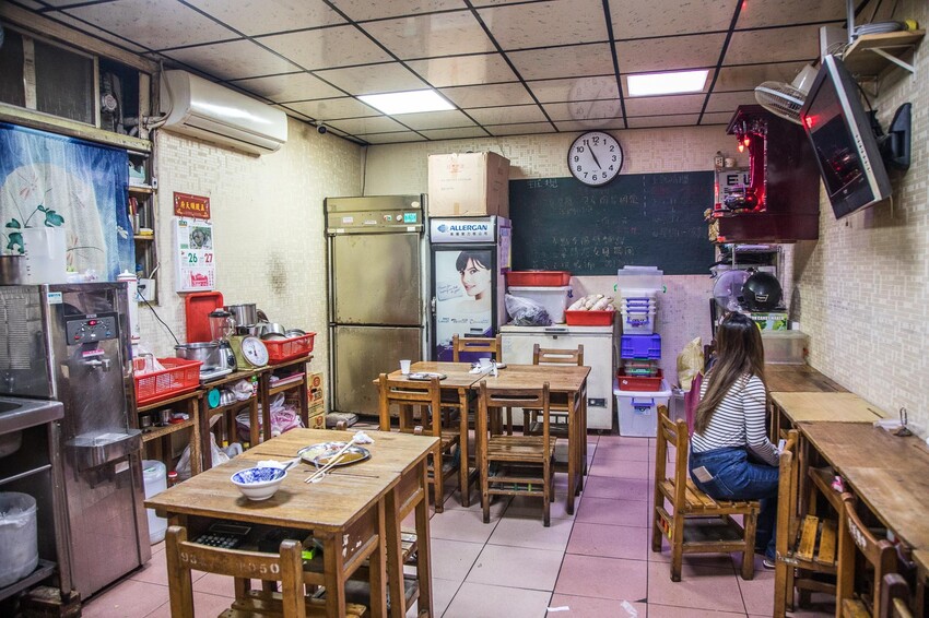 三重樹仔腳林家臭豆腐有室內跟室外的用餐區,桌椅都是像國小課桌椅一樣矮矮小小的,店家應該是想要營造小學堂的用餐氛圍,菜單跟營業時間都是寫在黑板上,很有趣