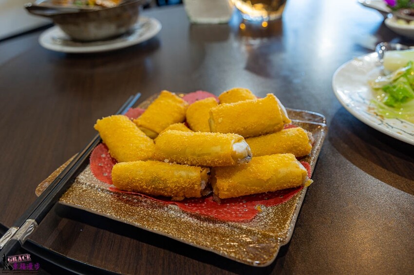 芋豆酥價格180元,用著春捲皮包著芋泥去油炸,吃起來外酥內軟且不油膩,芋頭香氣十足。