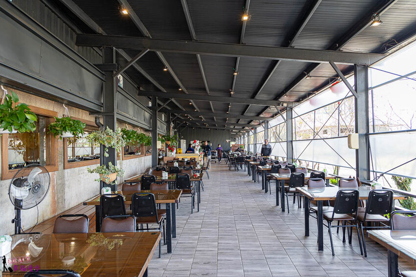 用餐區相當廣闊,有分半戶外區和市內區,拍這張照片時已經是接近中午餐廳休息時間,才能拍到空景,用餐時間人潮還蠻多的。