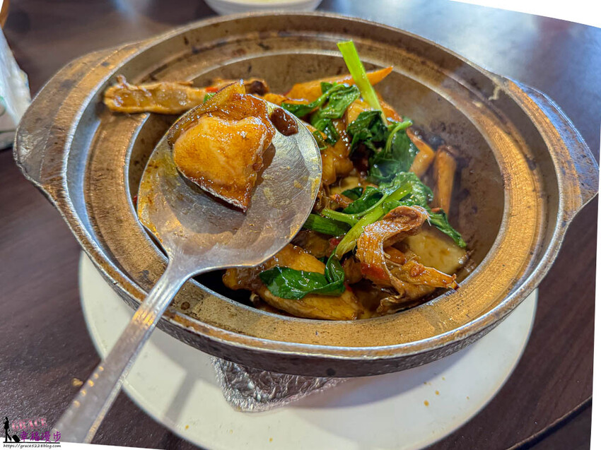 三杯鱸鰻價格380元,用薑和醬汁煸出香氣,在和鱸鰻一起拌炒,鱸鰻的外皮有著豐富的膠質,魚肉吸飽三杯醬汁相當美味。