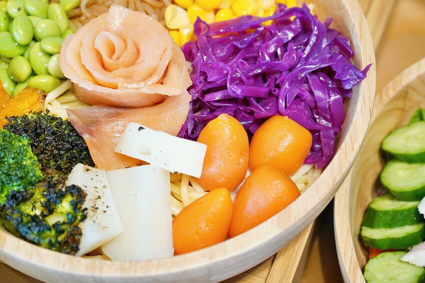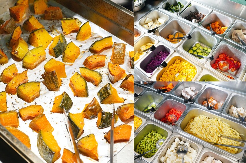 基底選擇的彈性也很高,目前有提供「半飯半菜」、「半麵半菜」的選項,雙重基底一次就能滿足。