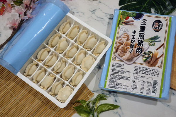 松包子除了好吃的美味包子很受歡迎、手工冷凍水餃也大受好評,松包子的松餃子有三星蔥豬肉水餃、剝皮辣椒豬肉水餃、韭菜豬肉水餃、油蔥酥豬肉水餃…等多種口味,我去的時候現場水餃區被掃到只剩下2個口味,所以帶回來三星蔥豬肉水餃、剝皮辣椒豬肉水餃兩種口味試試。