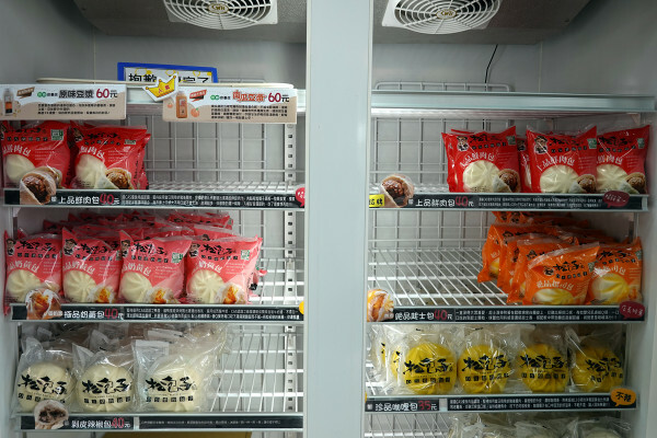 店裡也設有熱食櫃,現場還可以買到五種口味的熱包子,每種都有清楚標示品名及價格。