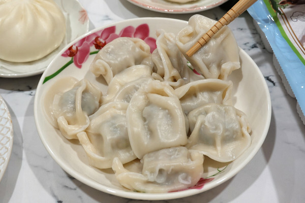 水滾開後煮個7~8分鐘,就能起鍋享用了!松餃子外皮的厚度很剛好,水煮時不會破裂,粒粒飽滿的松餃子每顆都有白嫩的外皮,模樣超誘人!
