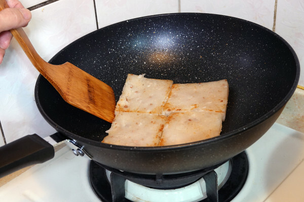 廣式蘿蔔糕若沒有要煮時可以冰到冷凍庫保存,要煮之前可以放冷藏4℃下完全解凍後,等完全解凍之後再以小火煎至兩面金黃就可以享用。