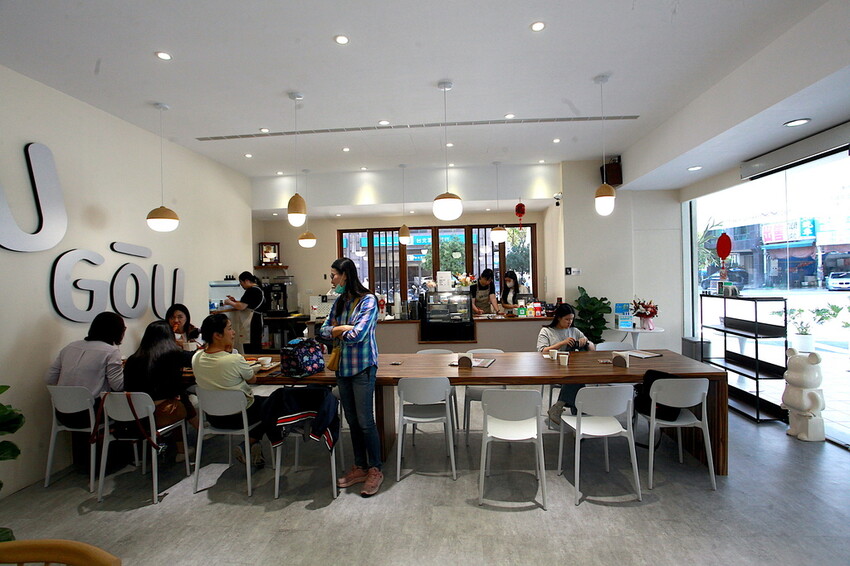 走入室內開放式用餐空間覺得很爽朗舒適,中間部份有設置大型共桌用餐座位,一邊是櫃檯區另一邊是2、4人座位區。