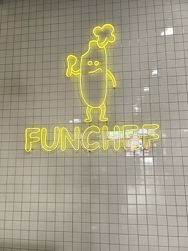 最裡面這面牆還有它們的Q版Logo,乍看還以為是香蕉,其實人家是一顆帶著主廚帽的飯粒,下面還寫著英文店名FunChef