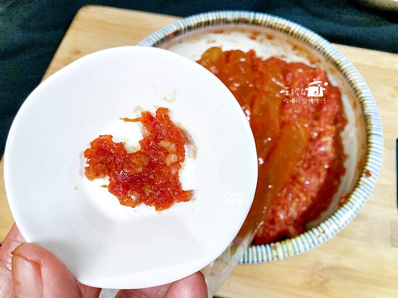 3.拌好的肉餡先挖一小口用微波爐加熱到熟,這時候還可以調整適合自己和家人喜歡的甜/鹹/辣程度