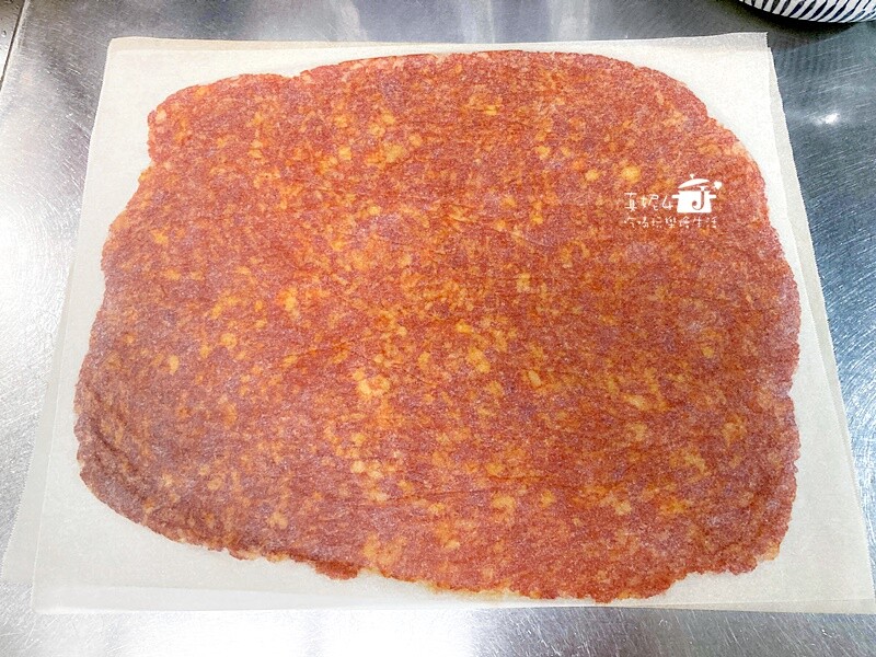 每台烤箱的火力不盡相同,食材進烤箱後要隨時關心肉乾焦化的程度(最重要的步驟)