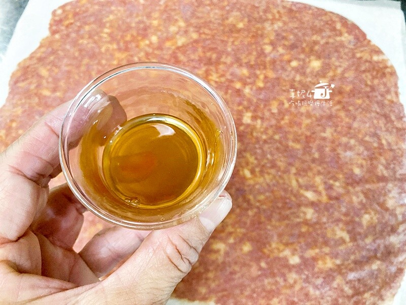 6.蜂蜜水(材料中的蜂蜜1:1加水調勻),薄刷在鋪平的肉餡上
