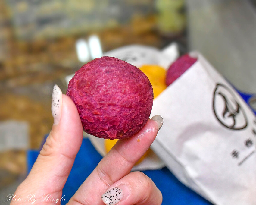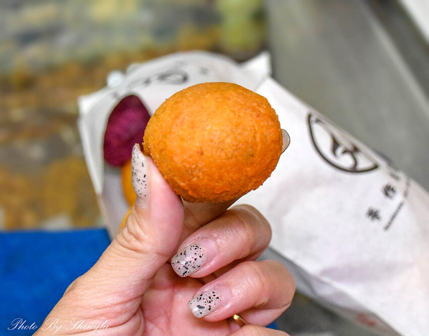 手作地瓜球,圓滾滾超可愛!表皮薄又脆,裡面還有些許內餡,很Q彈不會太甜,雖然是經過油炸,但完全沒有油臭味,口感也不會油膩,讓人一吃就愛上