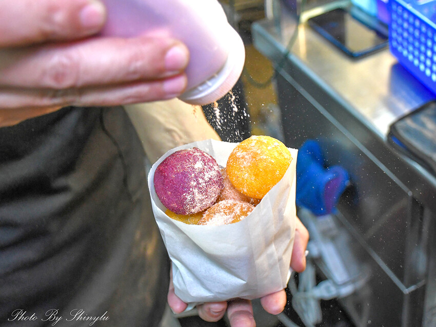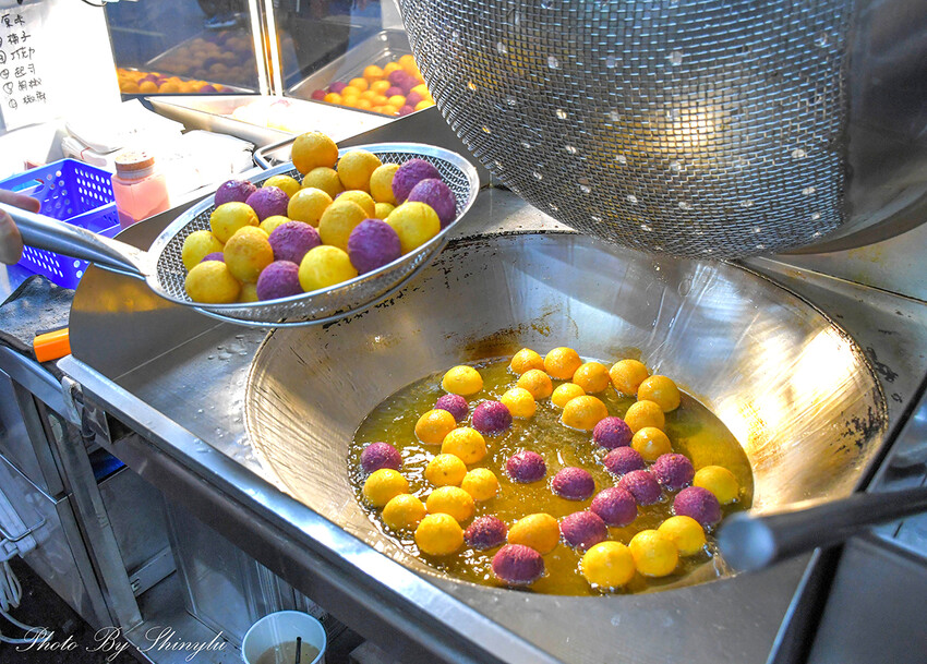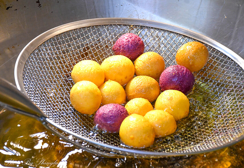 遠遠經過就可以聞到香噴噴的味道,看著地瓜球在油鍋裡,經過壓扁再膨脹的樣子,實在好療癒!