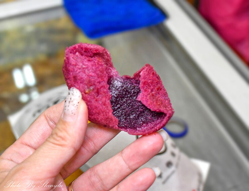 紫地瓜:吃得到紫地瓜的香甜,加上綿密紅心內餡,脆又軟的雙層口感,無論冷熱都好吃