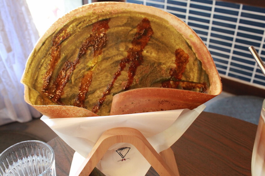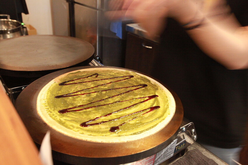 老闆娘正在製作小高所點選的抹茶可麗餅。