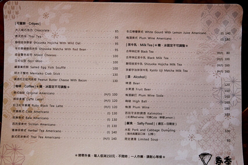 這間「卷季」是看到格友分享才收入口袋名單裡,店址就選在新堀江商圈周遭仁愛街上,老闆娘很年輕獨自掌理這間店面,她說店裡的餐點都是自己研發而成,當初是相中這間日式老宅才決定創業,老闆娘說這棟老宅日據時代是一間診所,「巻季」是一家專賣可麗餅日式昭和風喫茶店,除了可麗餅還有咖啡、茶飲、酒品及甜點等供享用,小高品嚐完覺得美味定價合理範圍,值得樂天小高極力推薦給您品嚐。