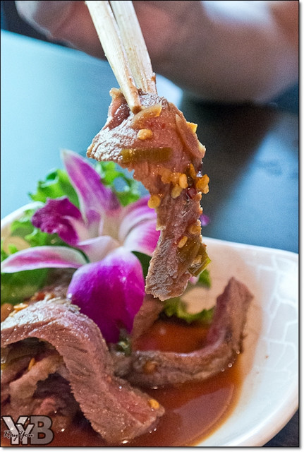 將牛小排料理到七分熟再搭配酸辣的泰式sauce~