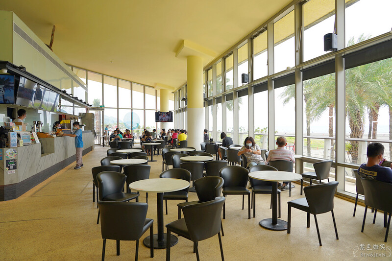 室內9號咖啡館提供咖啡、餐飲小點和借問站服務,大片落地窗可遠望太平洋濱海美景及龜嶼佳景,號稱是離海邊最近的咖啡館