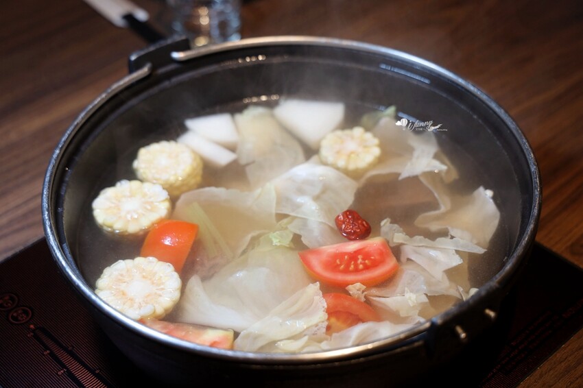 牛骨及蔬果的湯底,川燙蔬菜最合適了!