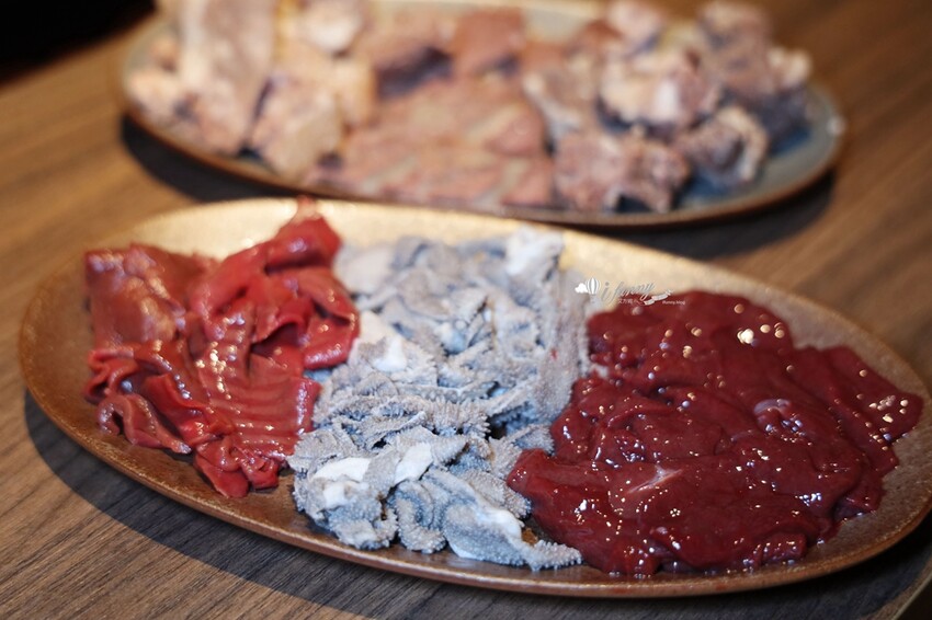 牛肝、牛百葉、牛心,富含蛋白質,營養價值超高。其中牛肝及牛心只要煮5秒,另外牛百葉的味道比較重,建議最後再煮,大概煮個10秒即可取出。