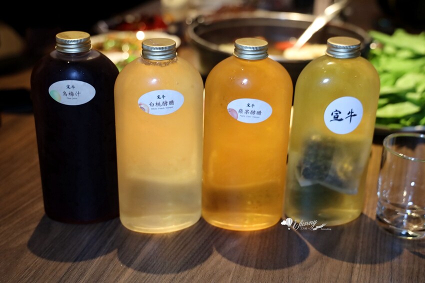 其中原萃綠茶無糖,好解油膩。其他三款飲品,都是酸酸甜甜的,搭配鍋物超合適。