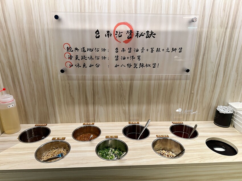 為了宣傳台南牛肉湯,宣牛溫體牛肉火鍋特地與安平阿財牛肉湯聯名合作,連醬料檯也有「台南沾醬秘訣」。