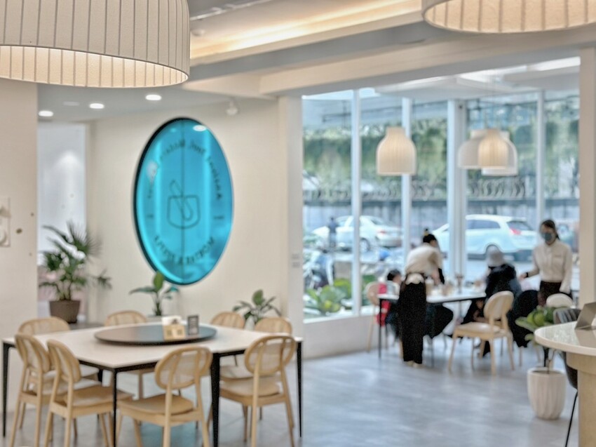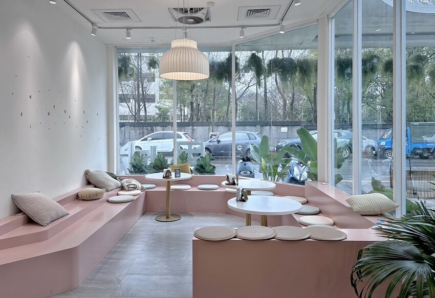 異域Mortar & Pestle店內用餐環境寬敞又明亮,但用餐桌數不算多,大多的座位設計都是以方桌為主,而適合多人用餐的合菜圓桌就僅兩張桌且安排在廁所附近;餐廳內設計一區很適合愛拍照打卡的朋友來用餐的用餐區,這裡很有韓風甜點店的質感,但缺點就是用餐桌子很小!