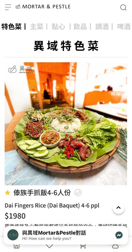 異域Mortar&Pestle菜單沒有提供紙本菜單供參閱,菜單需要掃QR-Code在線上看,但大家可以直接到官網作參閱↓
