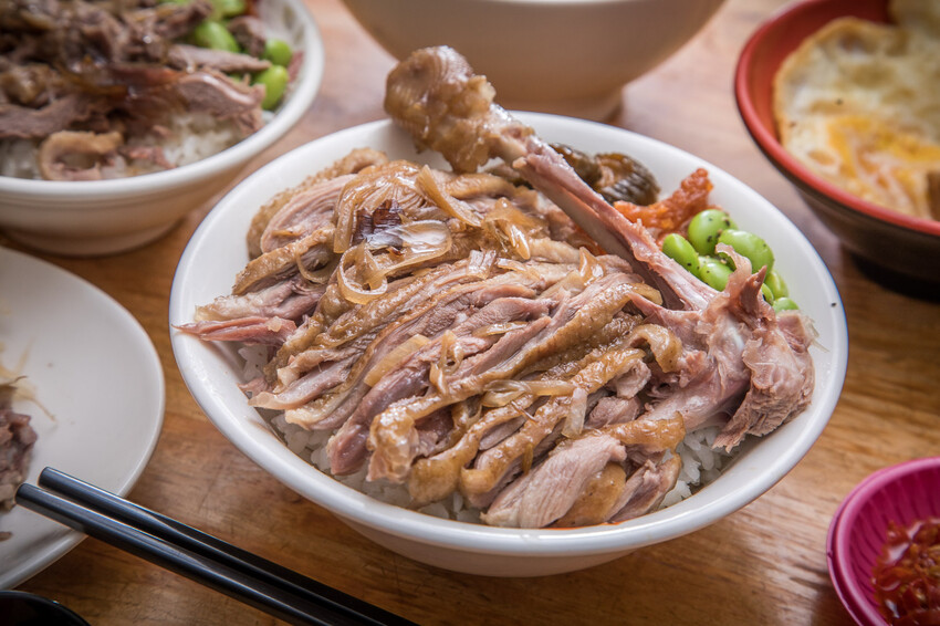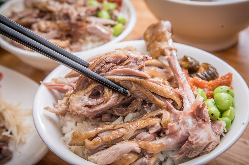 鴨肉飯(小),鴨肉飯雖然視覺外觀沒有鴨腿飯那樣吸睛,但吃起來美味也是一點也不輸呢,底下的飯同樣也是有淋鴨油,鴨肉是細條狀,所以很容易拌入飯中,邊拌邊吃滿口鮮香