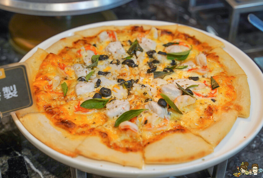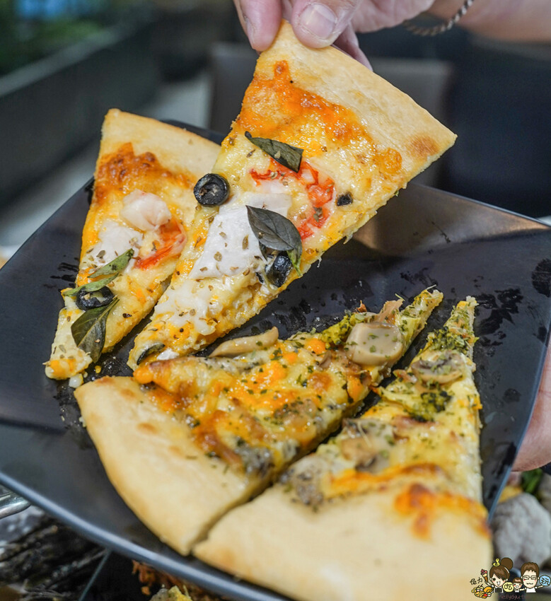 手工披薩是薄餅皮,不用擔心吃了一塊就很飽唷!
