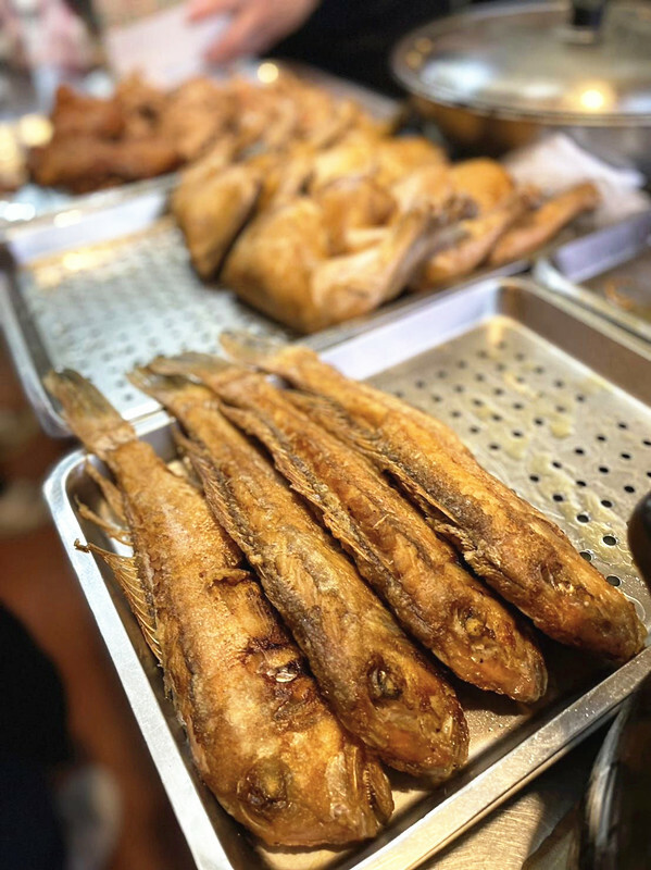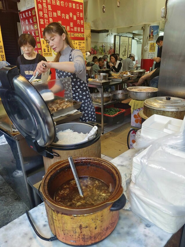 夾餐檯前還有一鍋滷肉燥,他們會問你白飯要不要加點滷汁