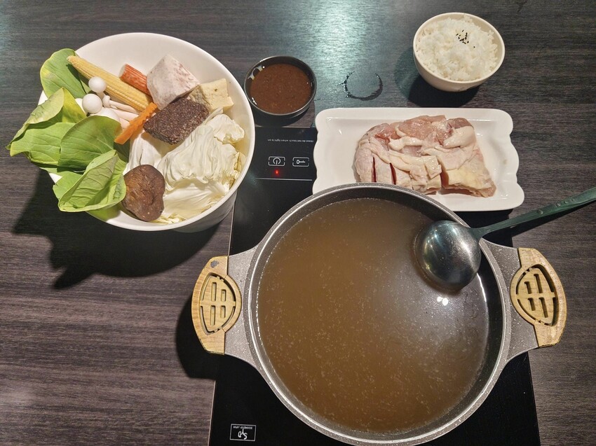 用雞湯熬出來的湯底清甜好喝,蔬菜比較多反而少見湯餃丸子等火鍋料,吃起來比較健康