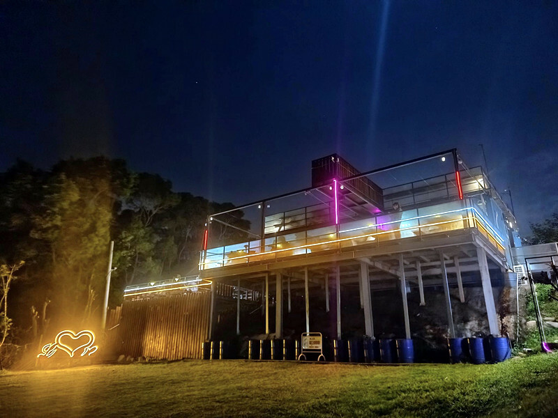 從山坡下往上看,滔月景觀咖啡廳是蓋在山坡上的鐵皮屋,不過人家還有燈光裝飾,晚上看起來還不錯,不過白天可能就沒那麼出色了