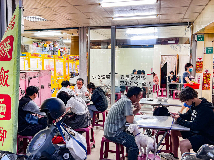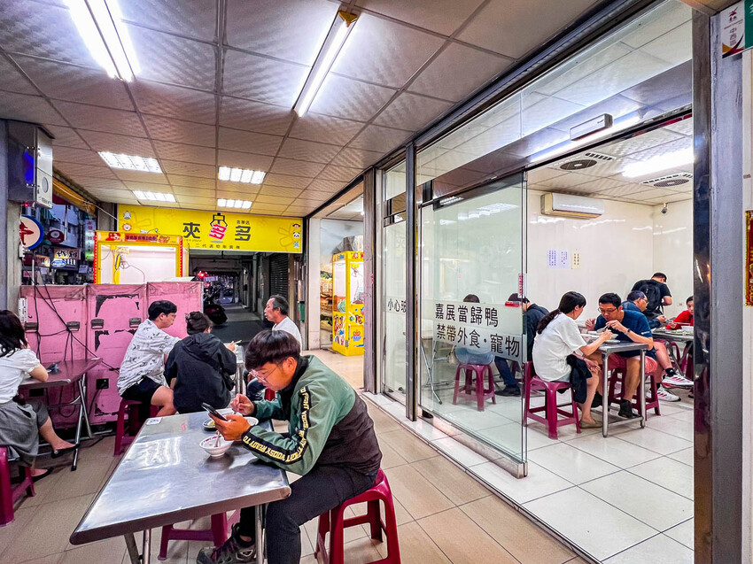 嘉展當歸鴨用餐區大概分為兩處,他一家就包了兩個店面,一邊是廚房,另一邊則是有冷氣的用餐區,騎樓處也有擺桌椅,內用自己先找座位再去點餐