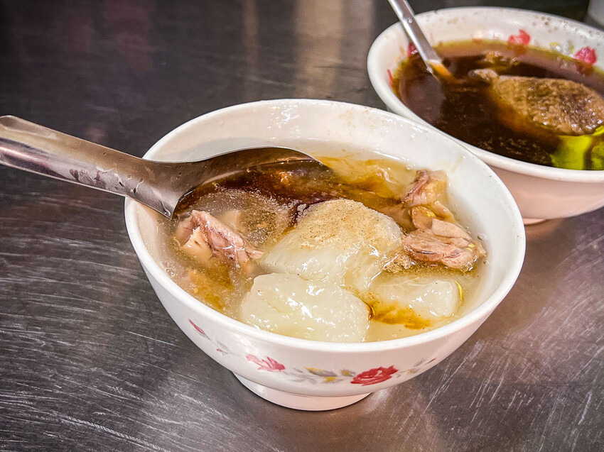 鴨肉焿,跟一般我們看到的鴨肉焿不大一樣,裡面竟然有大塊白蘿蔔,鴨肉的肉量也是很敢給,而且都是大塊的那種