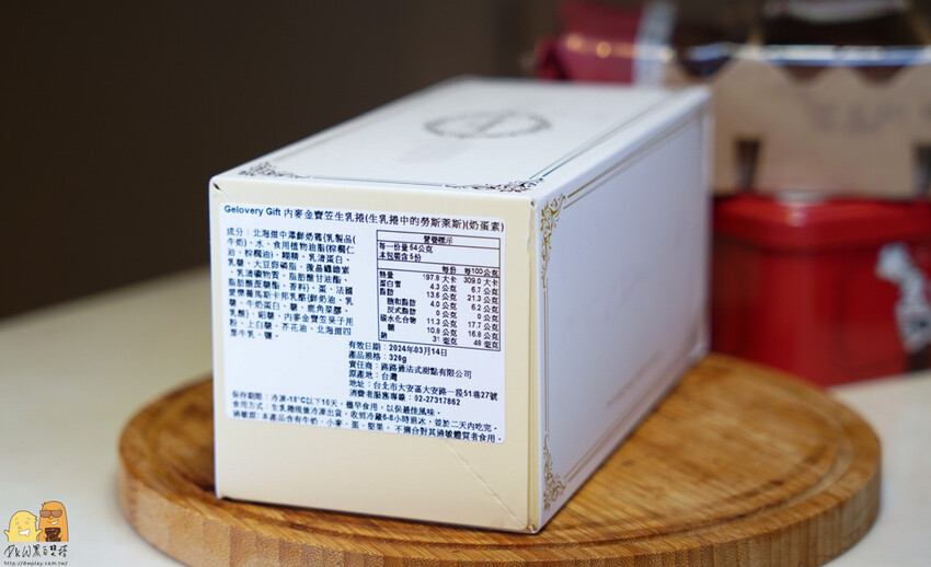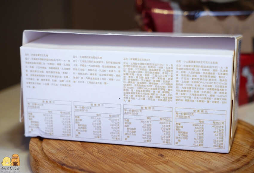 網購超夯生乳卷的外盒有相關的商品原料與營養標示等資訊,若有對蛋奶類過敏的人要注意哦