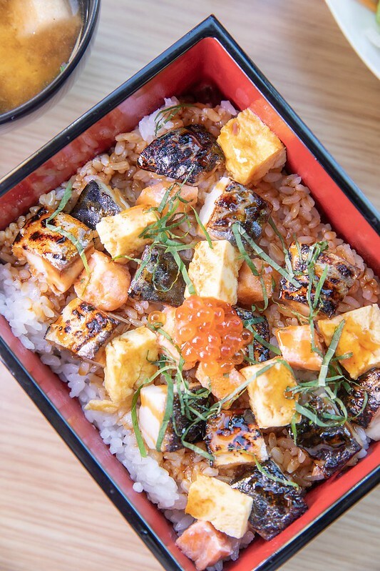 焼き鯖重真是香得亂七八糟,尤其是鯖魚的油甜單吃,配著白飯都好吃得亂七八糟,裡面還有玉子燒、鮭魚丁、鮭魚卵,及切碎的紫蘇葉,每一口都同時滿足了色、香、味,這享受半點不比鰻魚飯來的差。
