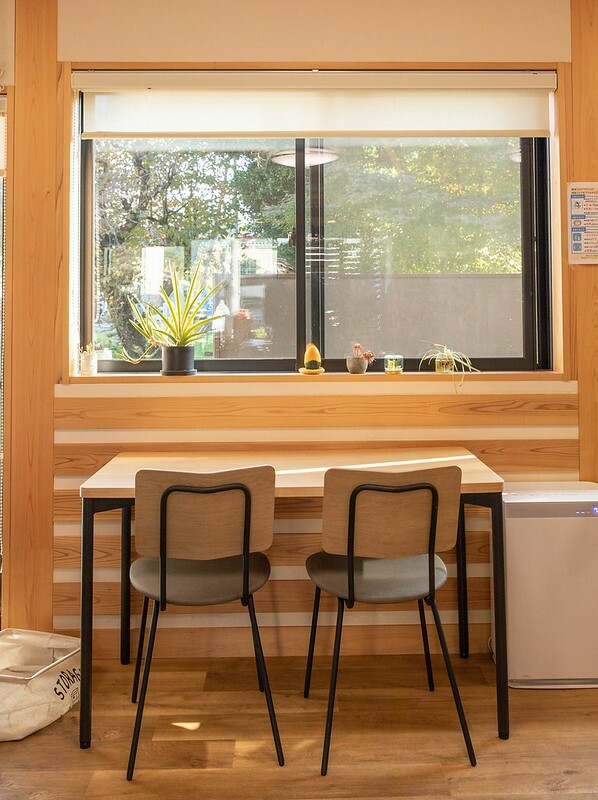 商店的後端是木造環境的餐廳,遠比我想像來的潮一點,來的舒服許多,尤其是陽光透過窗靈照在木桌上時,有一種很難言喻的寧靜和悠閒。