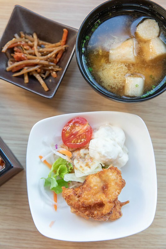 麵麩味噌湯、炸雞沙拉及醬菜也都不馬虎,尤其是炸雞超好吃的。