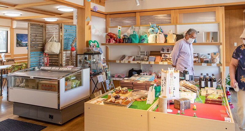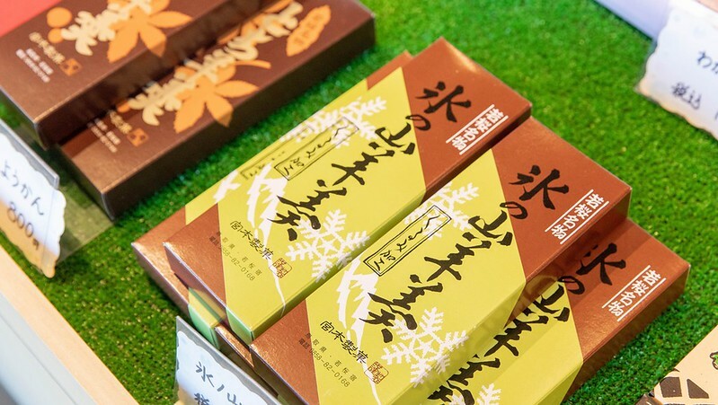 店裡的前手是拌手禮商店,除了若櫻的名物外,也有「氷ノ山」,這裡是鳥取著名的滑雪場,也是關西少數可以欣賞到樹冰的地方,希望有機會能到訪,而冰之山的名物最享盛名的便是「氷ノ山羊羹」。