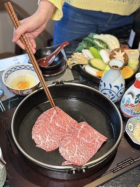 ▼橋山壽喜燒使用專門的鑄鐵鍋煮具,