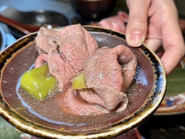 ▼也可將涮煮後的牛肉包入大蔥食用,