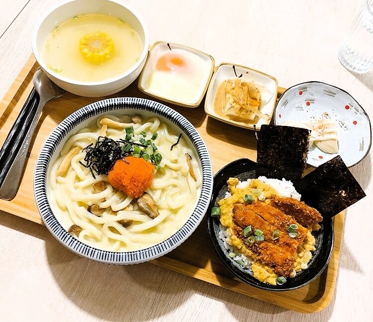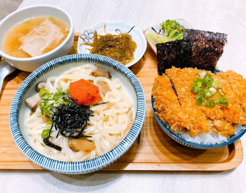 明太子奶油烏龍麵尬豬排