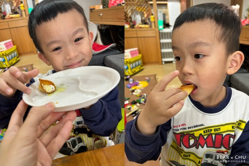 仔細看NY起司奶油脆餅的兩側整塊起司下方的餡料,其實還有添加杏仁碎,入口後有微微的堅果香味,讓整體風味增添滋味,有畫龍點睛的效果。