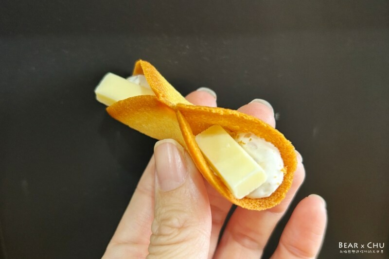 NY起司奶油脆餅的餅乾部分,是加了起司做成的很薄很酥貓舌頭餅乾,凹起來的形狀兩邊填入白巧克力、鮮奶油和起司餡料,不同層次起司奶香風味會在嘴裡融化融合,微甜帶微鹹的風味令人著迷。