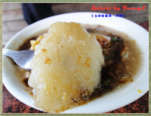 ↓美味的肉粿,其實沒有因為顧客多,就讓我們等太久,店家的速度實在快,哇!!沒想到肉粿這麼大一碗阿!!