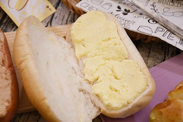 香蒜奶酥以新鮮大蒜磨成的蒜泥,加入了義大利香料,我覺得吃起來並不會嗆辣