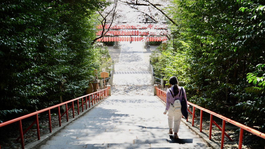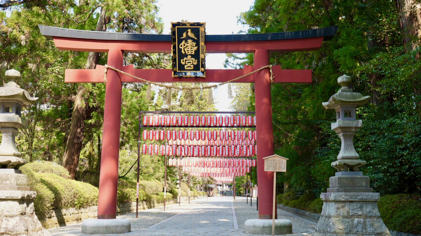 仙台市區景點推薦,一定要去「大崎八幡宮」,搭乘循環公車到BUS STOP 大崎八幡宮前站下車即可抵達,這座擁有400多年歷史的神社,已被列為日本國寶之一,兩排燈籠和鳥居、櫻花相呼應,滿滿的日式風情喔!