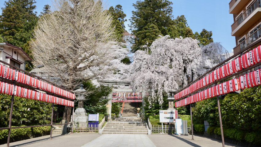 仙台櫻花季最佳拍攝景點就是大崎八幡宮,櫻花、鳥居、燈籠同框,真的是太美了,大崎八幡宮境內有染井吉野、山櫻、八重櫻、垂櫻等各種各樣的櫻花樹,最佳賞櫻時節落在3月底至4月初,4月中櫻花凋零時,神社內會有櫻花雪般的迷人景色喔!