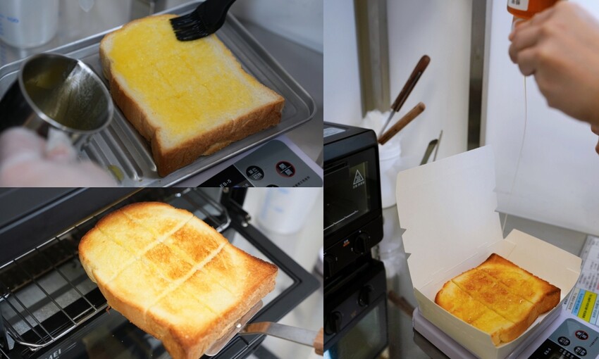 ▲蜂蜜奶油格子會先將融化的奶油抹在厚片吐司上面,放入烤箱烤到金黃色後,再淋上蜂蜜!